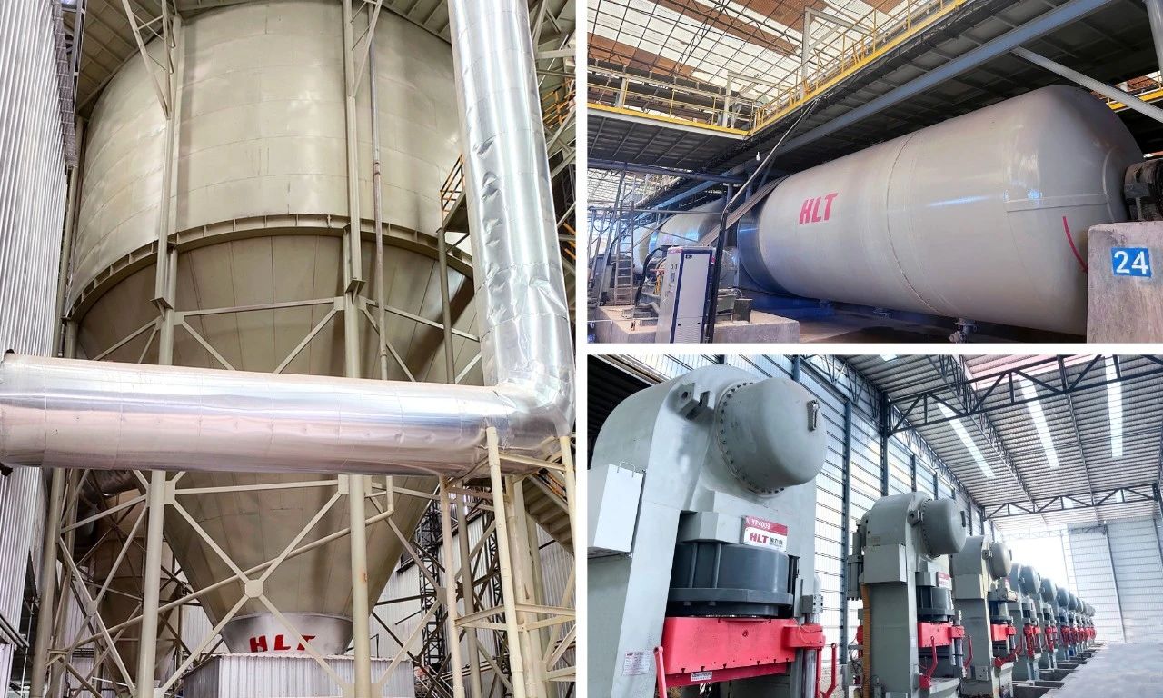 VNHOME公司新建項目為一條西瓦整線及一條配套配件瓦整線,從原料車間-成型-干燥-燒成-窯后的整廠裝備均引進力泰陶機,包括PST-24000型智能環保型大產量噴霧塔、高效智能100噸球磨機、海內外暢銷型節能標桿YP4009自動液壓機、EM系列高效自循環四層干燥器、三層干燥器、窯前干燥器、“4.0能效標桿數智時代”DFC燒成窯及窯后裝備。