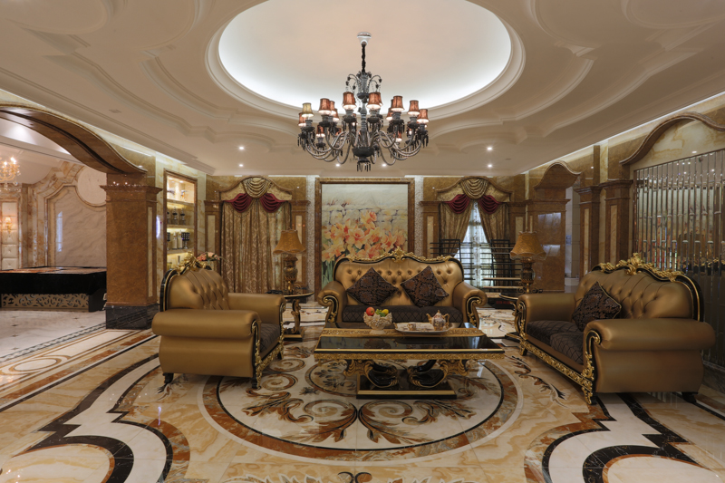 在這里,精美的配飾、古樸而豪華的家具和瓷磚相映成趣,花草樹木恰到好處地點綴著每一個角落,各種物件的搭配水乳交融,各種色彩的運用渾若天成……